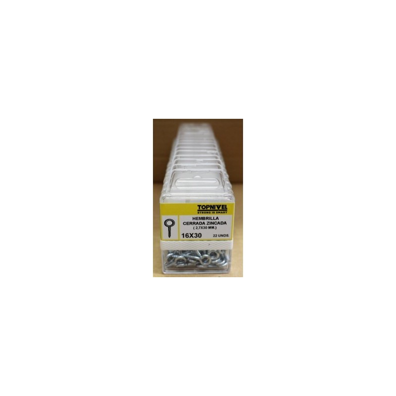 Blister hembrilla fijación cerrada 16X030mm cincado nivel 22 piezas