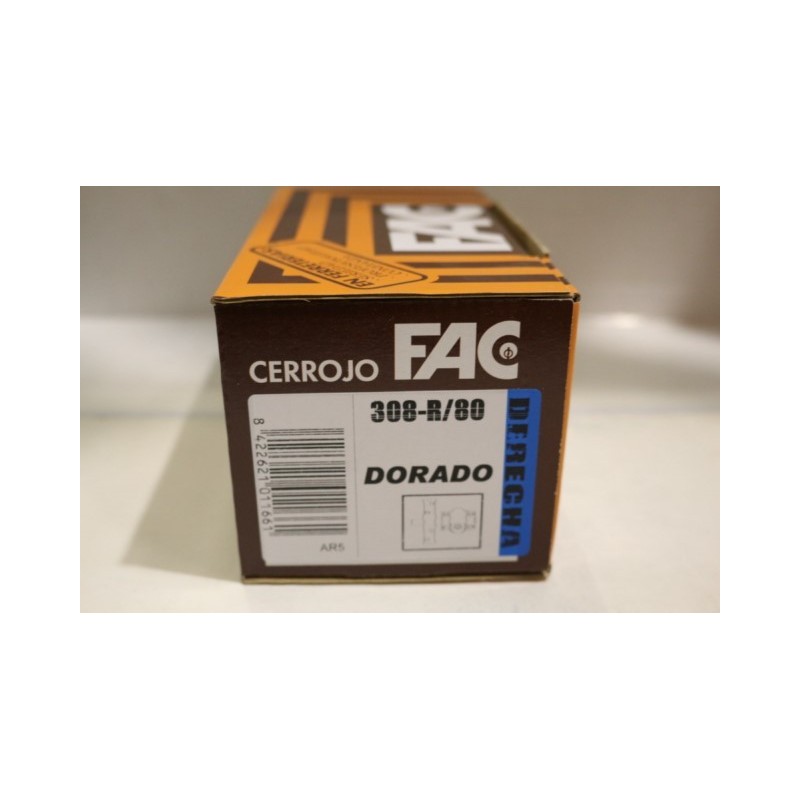 CERROJO CON RESBALON LATON 308R FACCerrojo FAC con resbalonAcabado doradoCilindro de 50 mmMano izquierdaReferencia de Fac 01167Potencia tu seguridad con el Cerrojo con Resbalón Latón 308R de FAC. Este cerrojo robusto y confiable ofrece una protección adicional para tus puertas. Fabricado con precisión y acabado en latón, combina durabilidad con un toque...