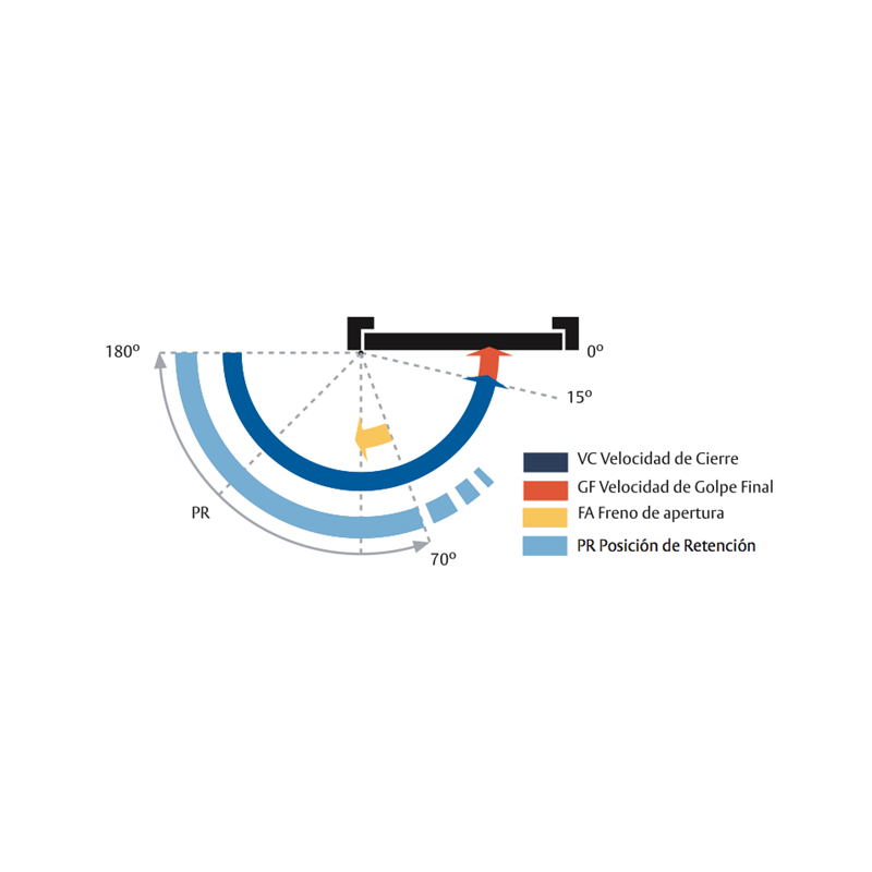 Su diseño versátil permite mantener las puertas abiertas cuando sea necesario y cerrarlas suavemente cuando se requiera.