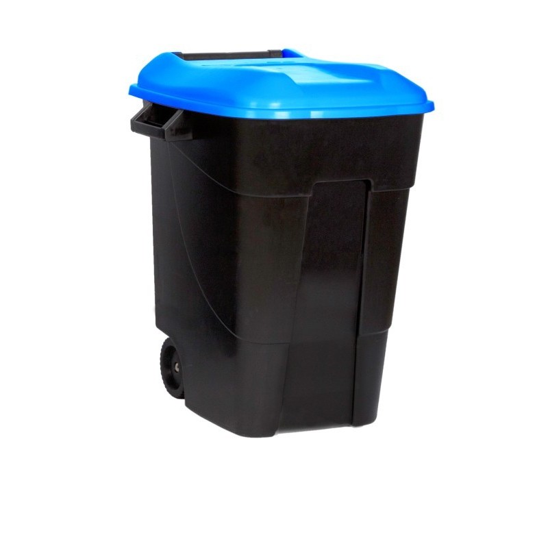Contenedor de basura y tapa abiertaCapacidad de 65 litrosPosee dos ruedas y dos asas para facilitar el manejo.Disponible en diferentes colores segun el material a depositar