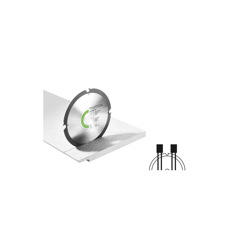 La hoja de sierra de diamante de Festool sierra de forma rápida y con un alto rendimiento de corte todas las planchas compuestas de madera o fibras, aglutinadas con cemento o yeso.