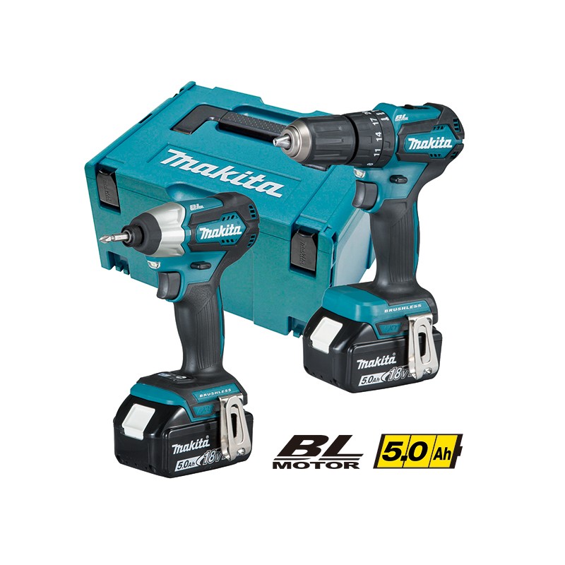 Ideal para instaladores, podrá llevar ambas herramientas al lugar de trabajo en un mismo maletín Makpac en el que incluye 2 baterías BL1850B (5,0 Ah) y cargador rápido DC18RC.