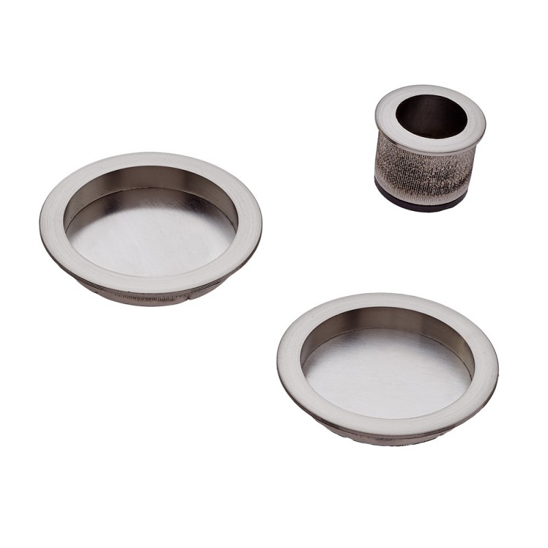 Kit puerta corredera Níquel con bombilloKit para puertas correderas con cilindroCerradura con cerradero fabricado en zamakEntrada de 50 mmCanto redondoBocallaves redondos fabricados en zamakUñero redondo fabricado en zamakAcabado niqueladoModelo 3130