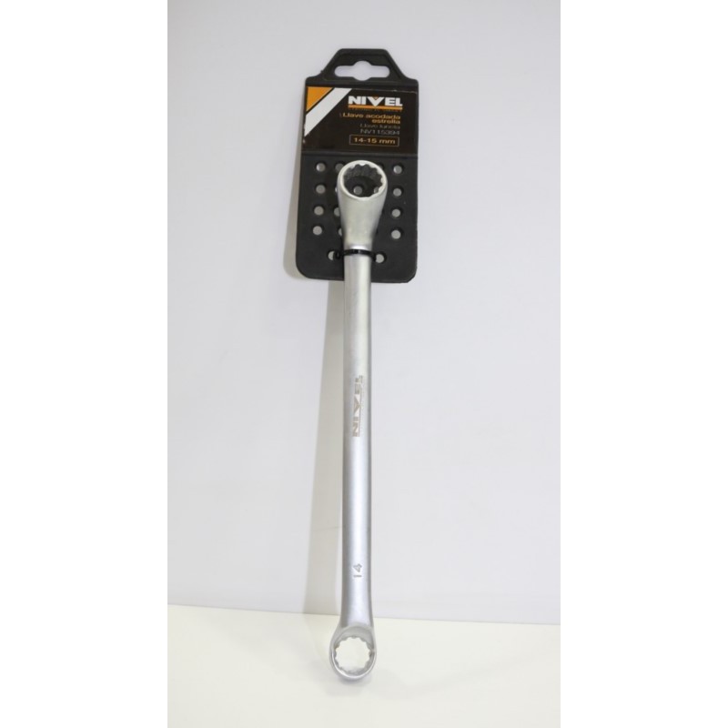 Descubre la llave estrella acodada de 14-15mm fabricada en cromo vanadio nivel y obtén la herramienta perfecta para tus trabajos de ajuste y apriete.