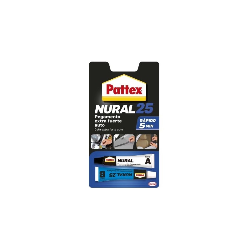 Pegamento Nural-27 Pattex 22mlSoldadura reparadora en frío rápidaPattex Nural 27 es una soldadura reparadora en frío, rápida (5 minutos), de gran resistencia, formulada en especial para pegar y reparar metales.